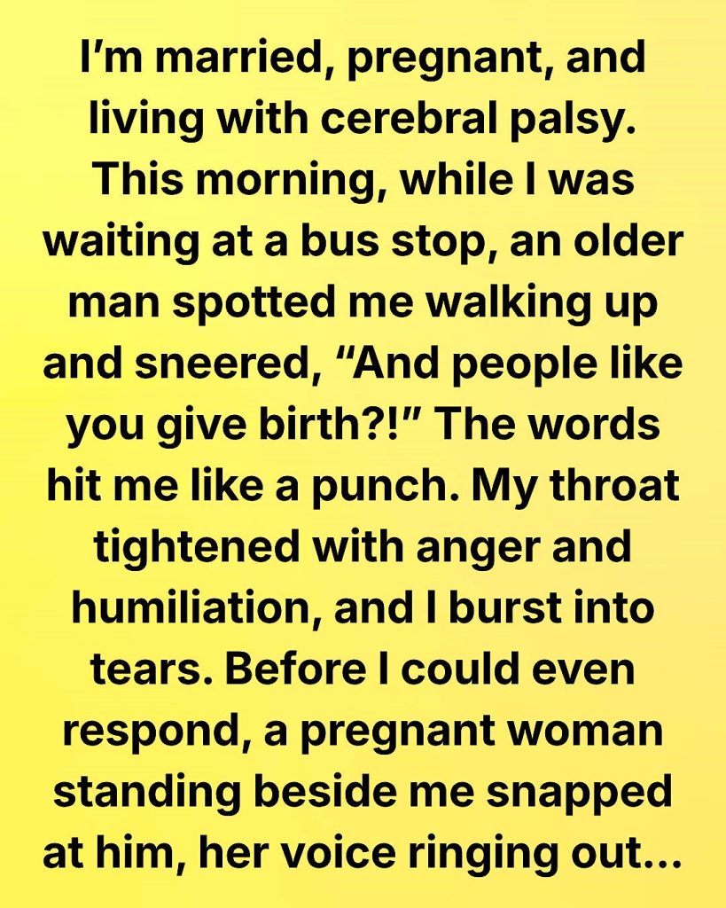 I’m married, pregnant, and living with cerebral palsy. These days, it shows only as a slight limp and occasional weakness in my left hand. I’ve learned to live with it. I’ve learned to smile through the stares. But today… someone’s cruelty caught me completely off guard.