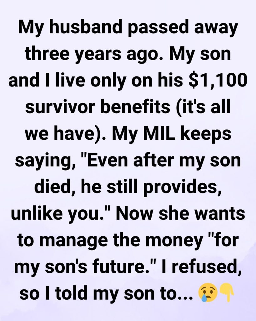 She constantly reminds me, “Even after my son died, he still provides, unlike you.” Hearing that never gets easier. And recently, she pushed things even further by insisting she should “manage the money” for Caleb’s future because she “knows what’s best.”