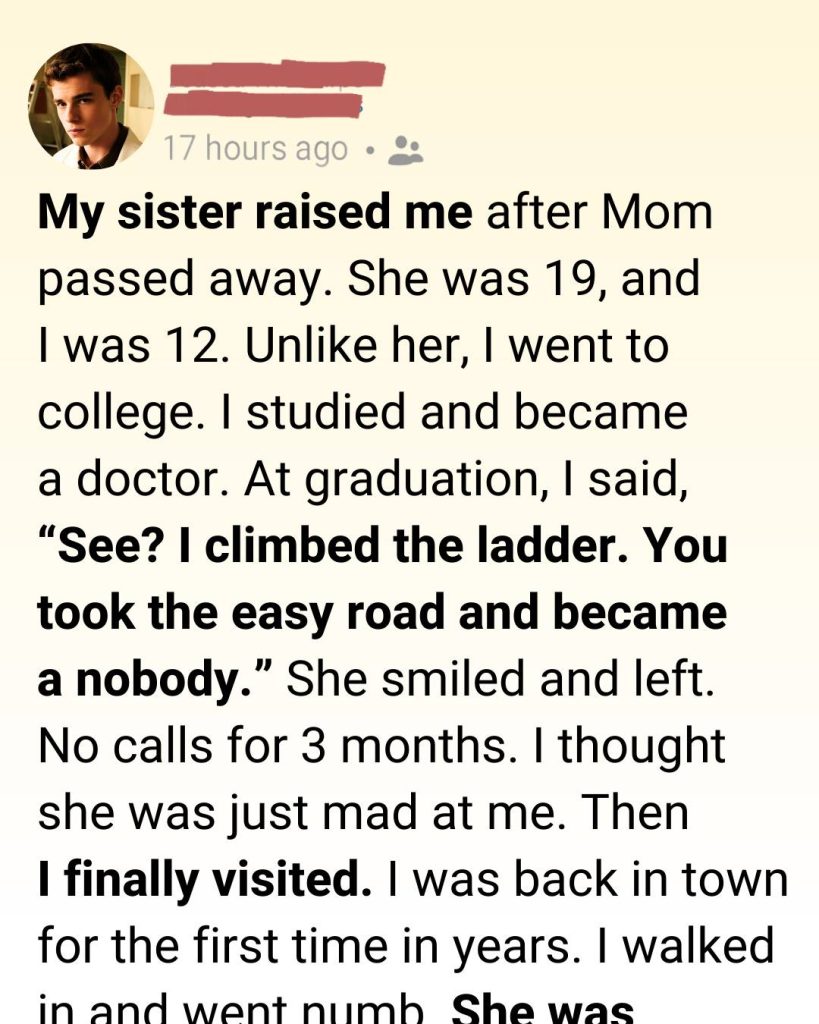 “There was never any inheritance,” she admitted quietly. “Mom didn’t leave us anything. I just didn’t want you to feel trapped. I wanted you to study freely.”