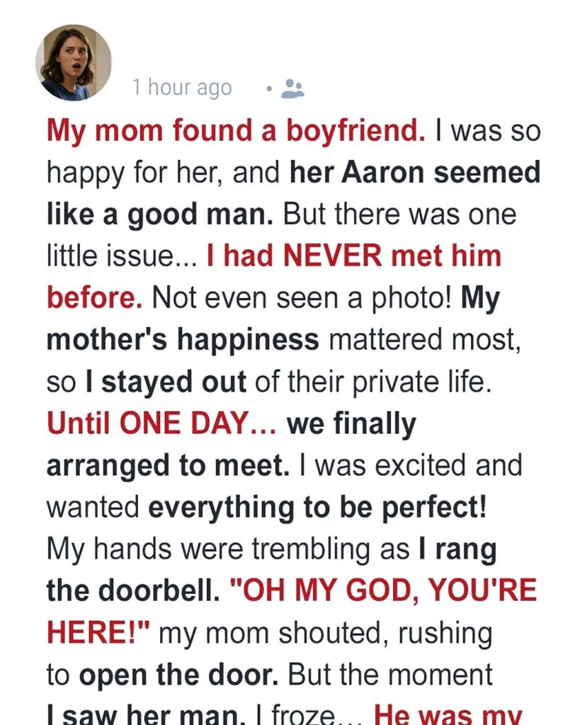 As I grew older, I began urging my mom to find someone new. She often confessed how lonely she felt, especially on those long, quiet evenings at home. So, when she called one afternoon, her voice bubbling with excitement as she announced that she had a boyfriend she wanted me to meet, I was genuinely happy for her.