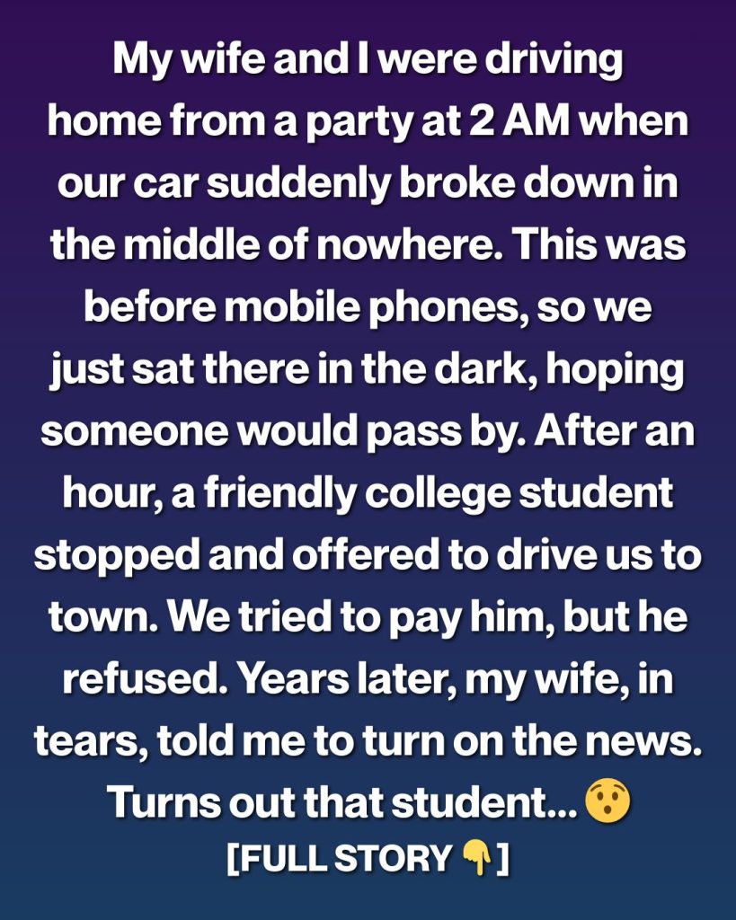 Our Car Broke Down at 2 A.M.—Years Later, the Stranger Who Helped Us Appeared on the News and Left Us Speechless