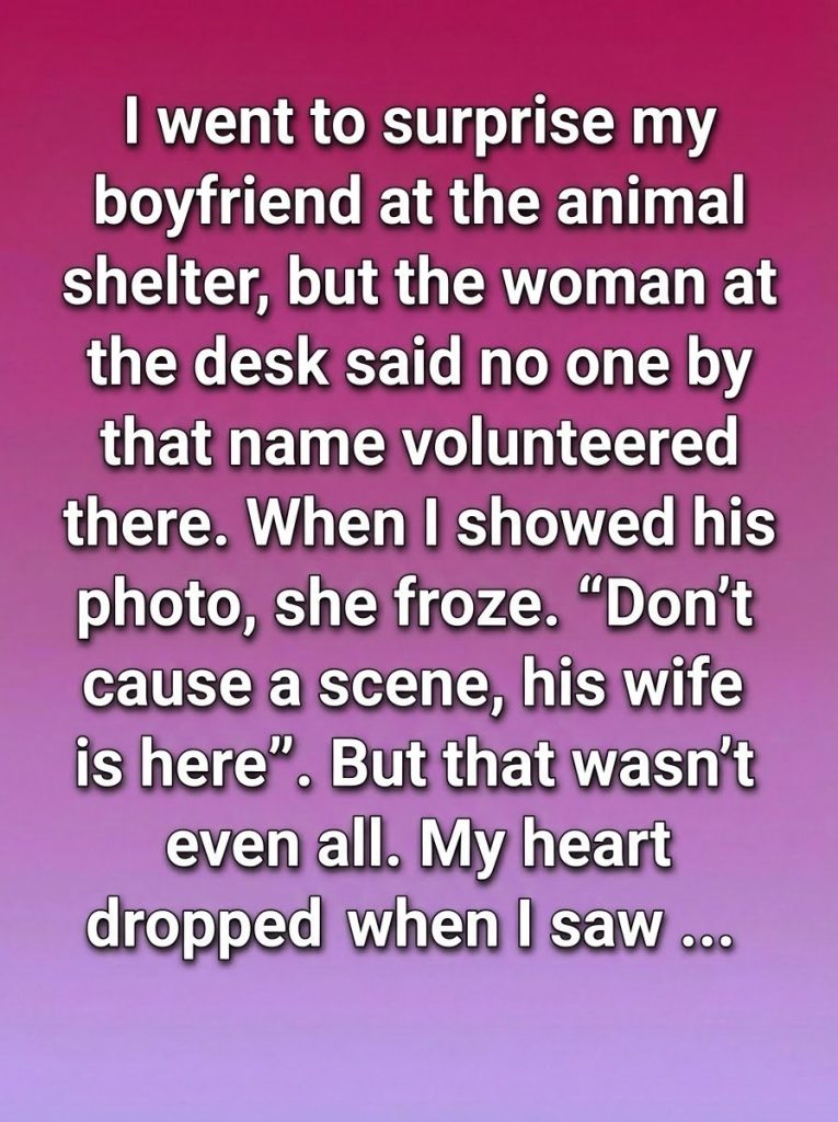 I had planned the visit as a small surprise, nothing dramatic—just a quiet way to show support for something my boyfriend often spoke about with pride. He had mentioned volunteering at an animal shelter, how it helped him unwind and feel useful after long workdays. I imagined his smile when he saw me walk in unexpectedly. But when I gave his name to the woman at the front desk, her expression shifted. She checked the list twice, then calmly said no one by that name volunteered there. I laughed awkwardly, assuming it was a simple mistake, and pulled out my phone to show her his photo. The moment she looked at it, she went still, then gently asked me to lower my voice.