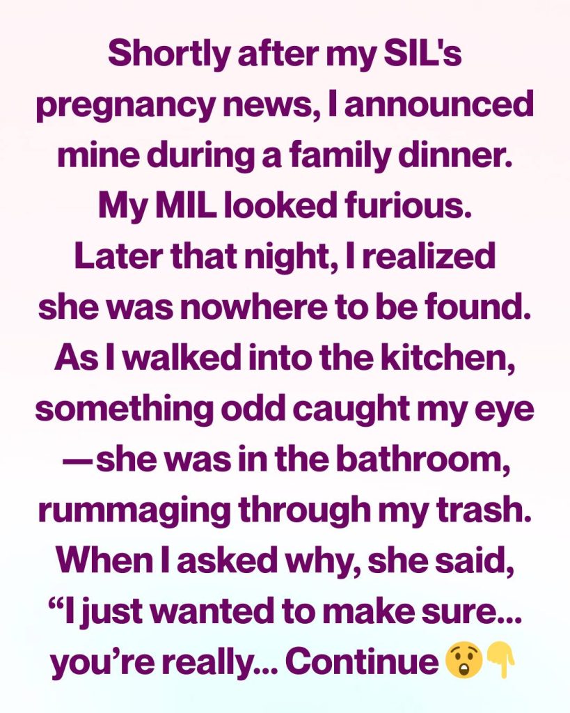 The accusation hit me like a slap in the face. My mother-in-law had always been intense, but this crossed into an entirely new level. It felt deeply invasive. I took a moment to gather myself before responding. “I’m not faking my pregnancy. You don’t need to go through my trash to find proof.”