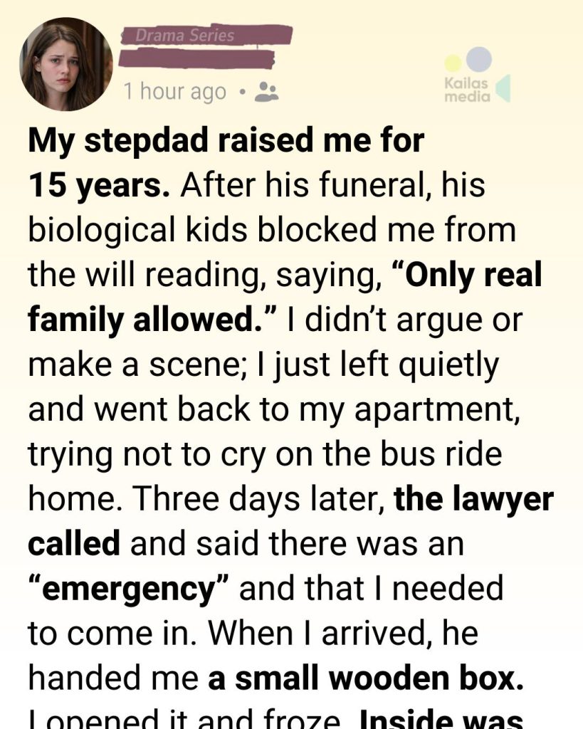 My stepdad raised me for fifteen years, though he never once used that word—step. To him, I was just his kid. He was there when I scraped my knees learning to ride a bike, when I bombed my first math test, when I graduated high school and didn’t know whether to laugh or cry. He never missed a school meeting, never forgot a birthday, never once reminded me that we didn’t share blood.