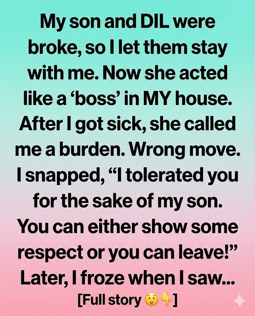 About two months in, the atmosphere shifted. My daughter-in-law began acting like she was in charge of the house. My house. She rearranged furniture without asking. She made lists and taped a cleaning schedule to the fridge—my fridge. She started buying groceries and handing them to me like instructions, telling me what I should cook and when.