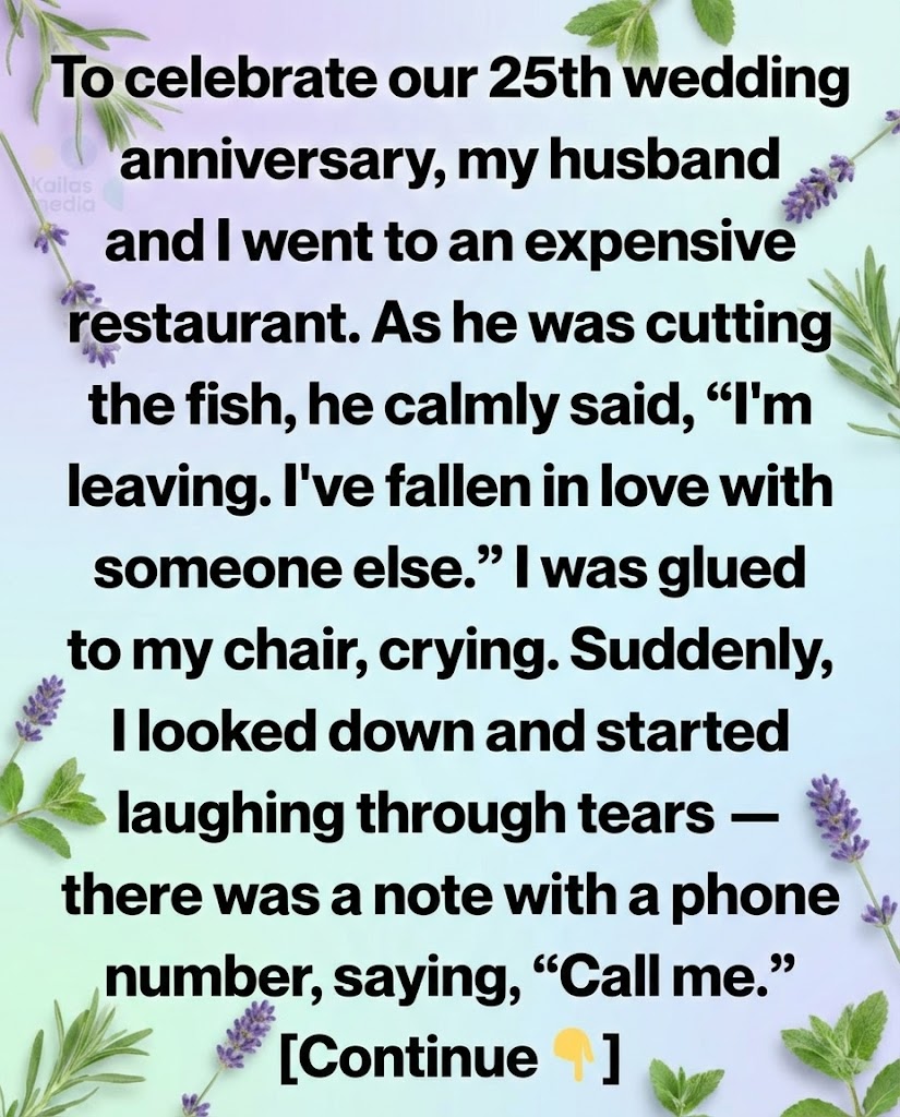 We had planned it for months—our twenty-fifth wedding anniversary, a milestone I once believed meant permanence. The restaurant was elegant in that quiet, expensive way: soft lighting, white tablecloths, a pianist playing something slow and forgiving. I remember thinking how strange it was that after a quarter of a century together, we were still sitting across from each other, still cutting our food side by side, still sharing silence.