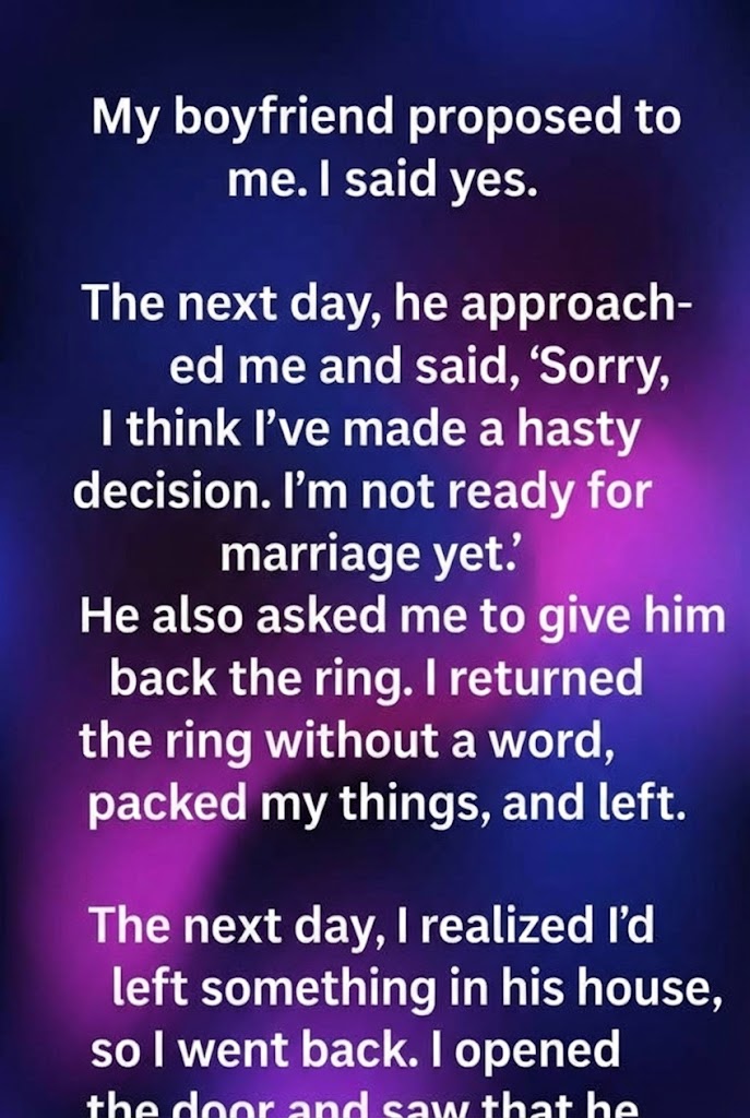 The proposal itself was everything I’d ever imagined, and more. A secluded spot by the lake, twilight painting the sky in hues of purple and gold. He was nervous, sweet, stumbling over his words just enough to make it utterly endearing. He got down on one knee, the ring box gleaming, a soft, hushed question hanging in the air. My heart pounded a frantic rhythm against my ribs. Tears welled. This was it. The culmination. The beginning of our next chapter.Say yes, say yes, say yes! My mind screamed. My soul soared.But then… I paused.
