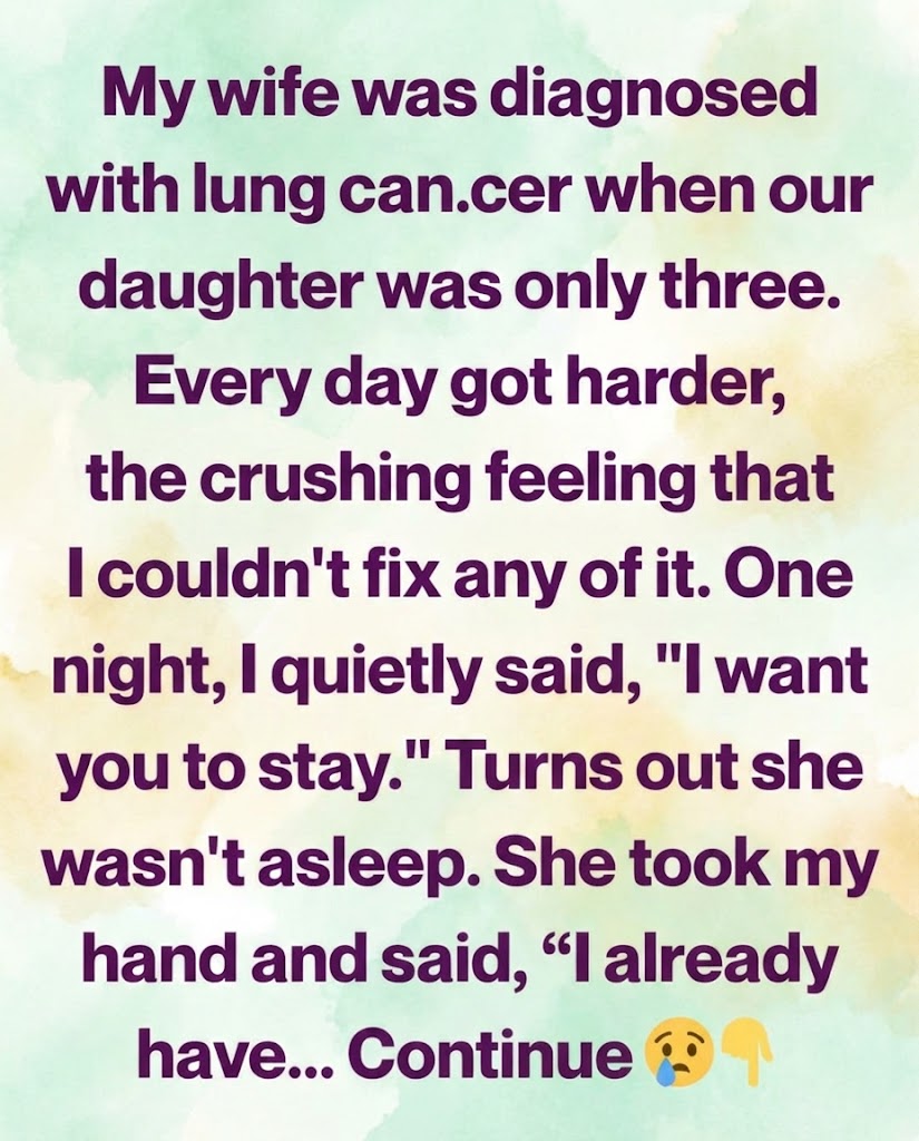 When my wife was diagnosed with lung can.cer, our daughter had just turned three. She still mispronounced her own name and believed monsters lived under the bed only if the light was off. I remember holding the doctor’s pamphlet in my shaking hands while my wife squeezed my fingers, her eyes calm in a way that terrified me more than fear ever could.
