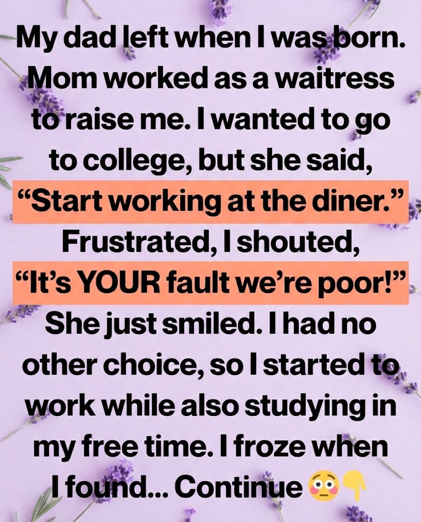She worked as a waitress at a small diner on the edge of town. I grew up watching her tie her apron before dawn and come home long after dark, her shoes worn thin, the smell of coffee and grease clinging to her clothes. She never talked about being tired, but I saw it—in the way her shoulders slumped when she thought I wasn’t looking, in how she counted every dollar before paying the bills.