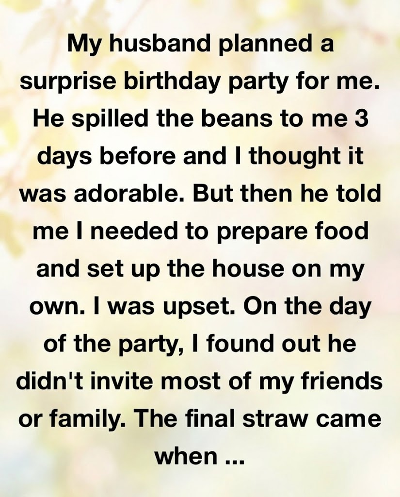 I was upset. On the day of the party, I found out he didn’t invite most of my friends or family. The final straw came when he asked me to “act surprised” because he had a video planned for his social media page.