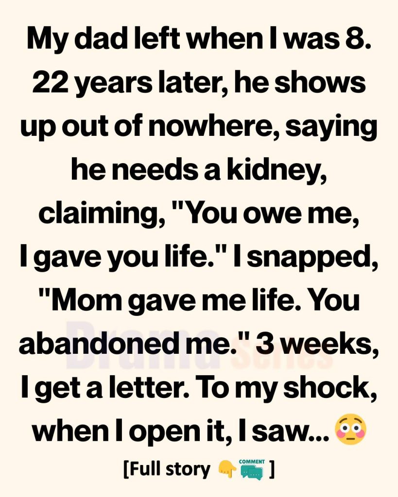 He told me he’d found me through social media. He said he was sick. That his kidneys were failing. That doctors said a transplant was his best chance.