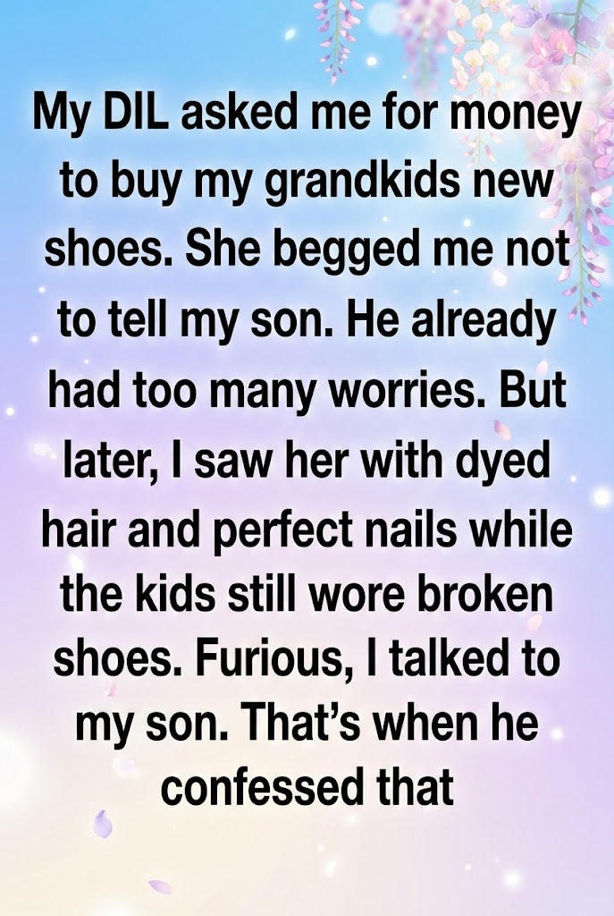 My daughter-in-law asked me for money to buy my grandkids new shoes. She came over to my house in Manchester on a Tuesday morning, looking flustered and tired, her voice barely a whisper as she sat at my kitchen table. She begged me not to tell my son, Callum.