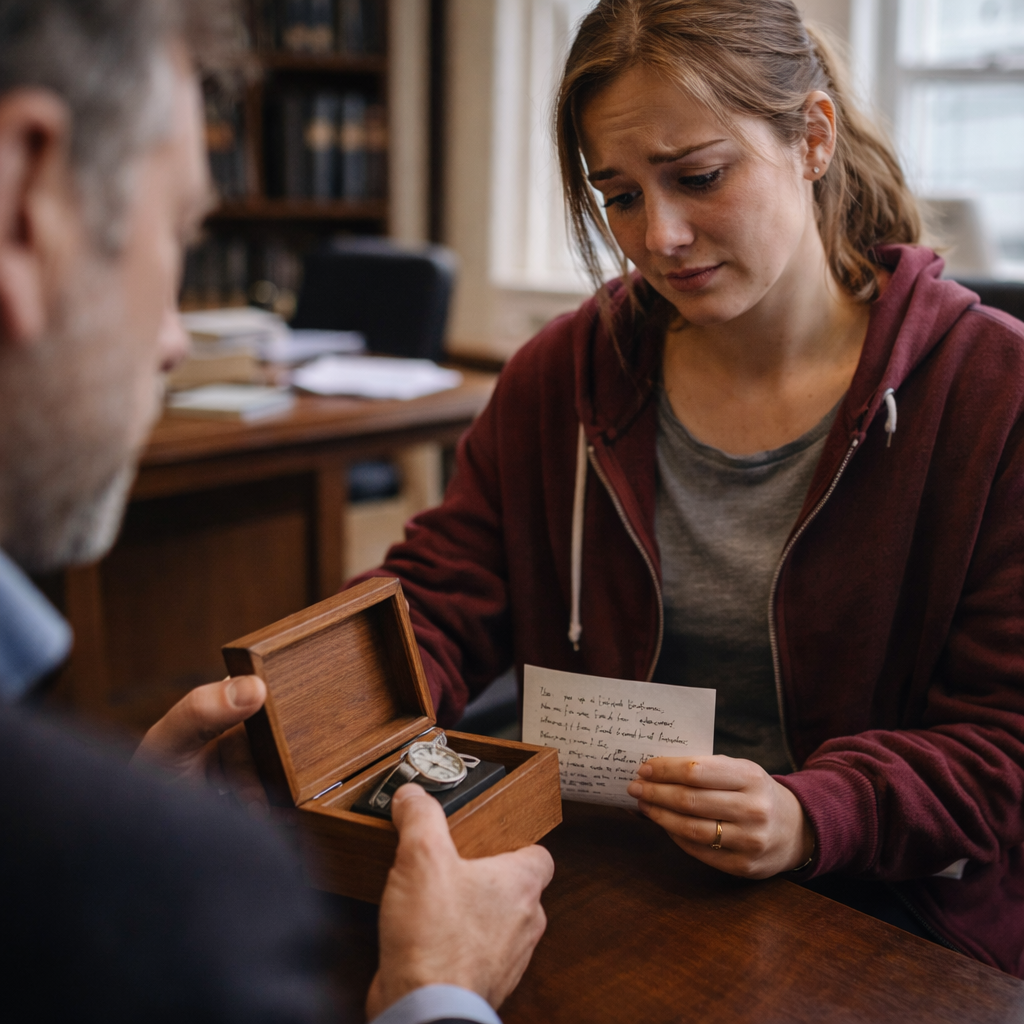 When I arrived at his office, the mood was heavy. The lawyer didn’t ask how I was doing. He didn’t offer condolences. He simply reached into a drawer and placed a small wooden box on the desk in front of me.