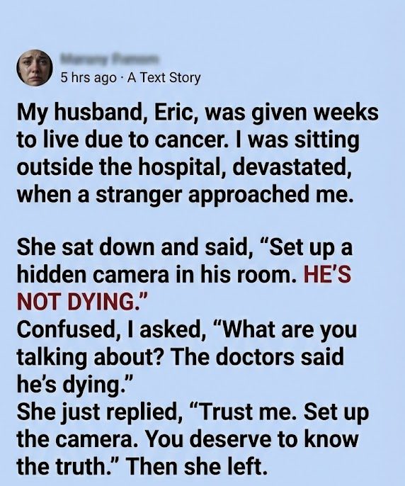 I set up a small camera in the corner of his hospital room. I told myself I was paranoid. That I’d feel guilty forever.