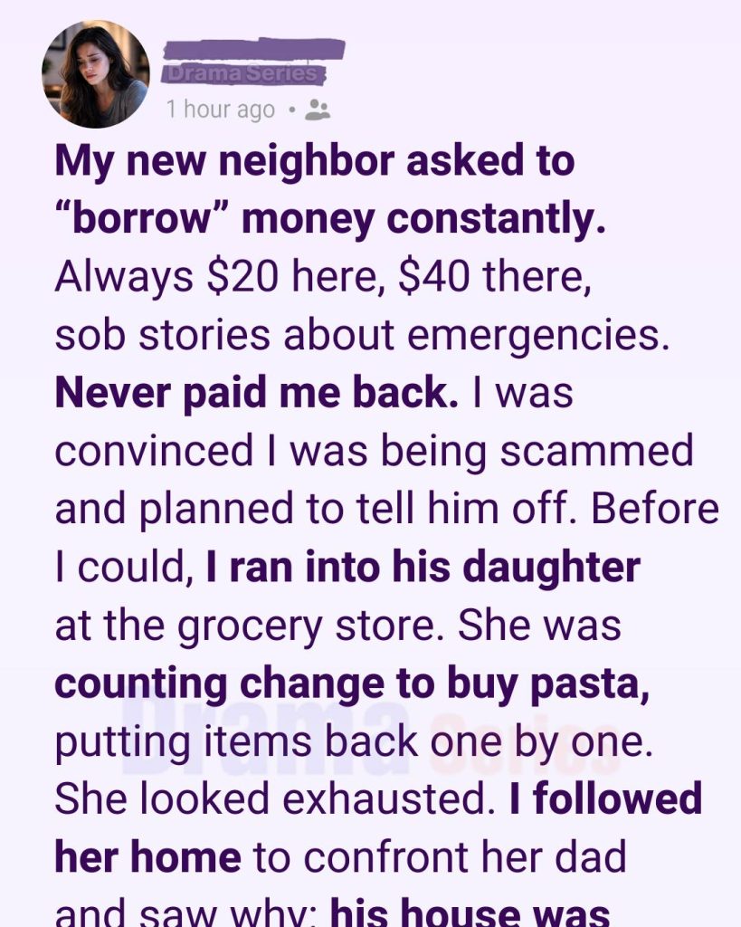 It became a pattern. Twenty here. Thirty there. Always small enough to sound harmless. Always accompanied by an apology and a story that never quite lined up. After the fourth time, I stopped answering the door right away. After the sixth, I started rehearsing what I’d say when I finally told him no. I was convinced I was being played—some long con built on pity and politeness.