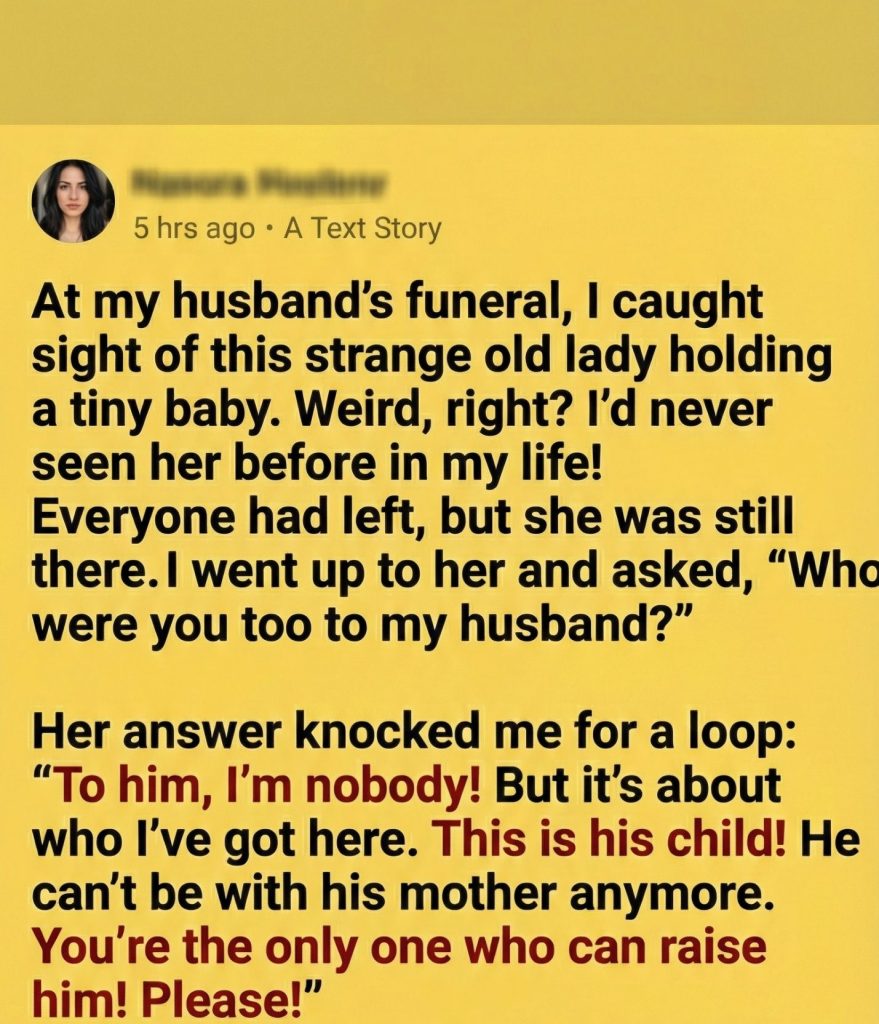 An old woman stood a few rows away from the grave, wrapped in a faded gray coat that looked far too thin for the cold. Her hair was completely white, pulled back in a loose bun. In her arms, she held a tiny baby, no more than a few months old, bundled in a blue blanket.