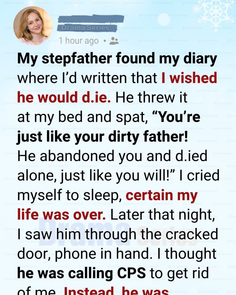 That evening, he came into my room without knocking. The door slammed hard enough to rattle the framed photo on my dresser—the only picture I had left of my real father, smiling awkwardly at the camera like he wasn’t sure he deserved to be there. My stepfather didn’t look at the photo. He didn’t look at me at first, either.