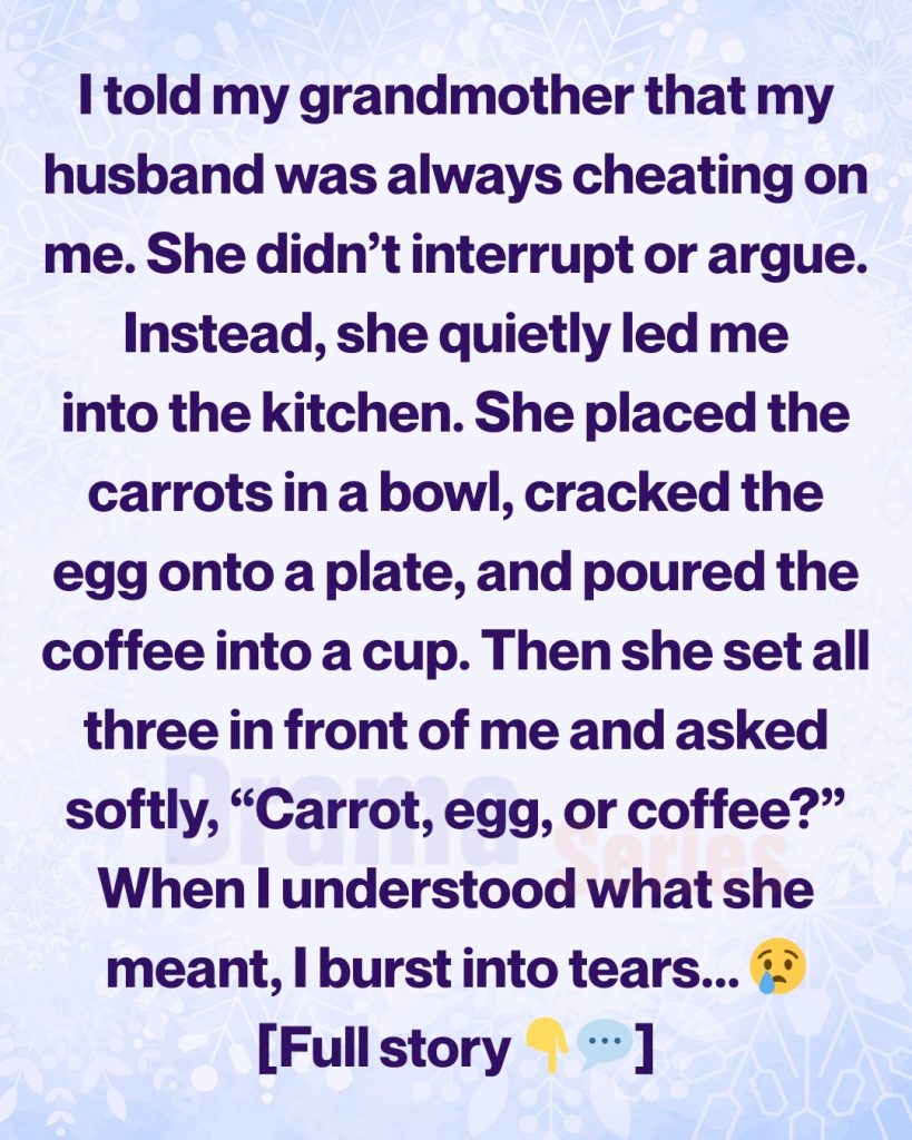I Told My Grandmother About My Cheating Husband—She Asked Me: Carrot, Egg, or Coffee?”