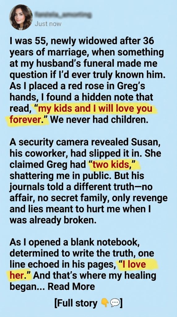 I was 55 years old, newly widowed after 36 years of marriage, when something I found at my husband’s funeral made me question whether I’d ever really known the man I loved.