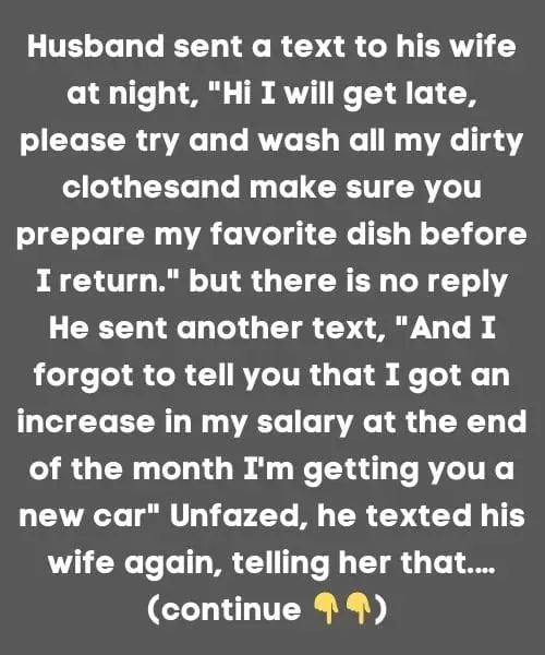 One late evening, a husband texted his wife, asking her to make his favourite cuisine and wash his soiled clothing before he came home. It surprised me that no one responded.